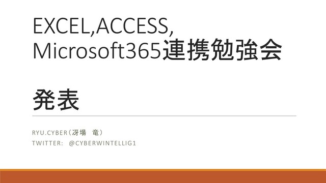 EXCEL,ACCESS, Microsoft365連携勉強会 発表 RYU.CYBER(冴場 竜) TWITTER: @CYBERWINTELLIG1