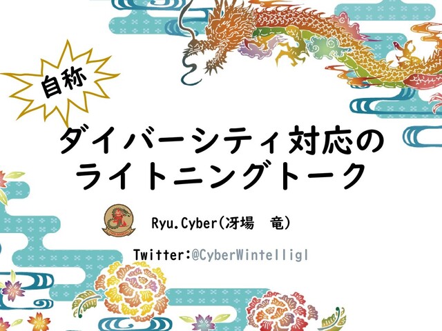 ダイバーシティ対応の ライトニングトーク Ryu.Cyber(冴場 竜) Twitter:@CyberWintellig1
