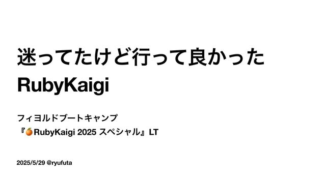 2025/5/29 @ryufuta ໎͚ͬͯͨͲߦͬͯྑ͔ͬͨ RubyKaigi ϑΟϤϧυϒʔτΩϟϯϓ ʰ🍊RubyKaigi 2025 εϖγϟϧʱLT