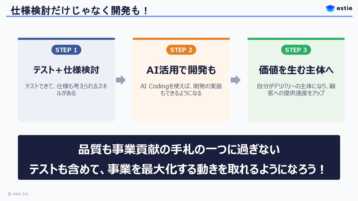 AI時代に「コードがわかるQA」から一歩進んで「コードで品質を作るエンジニア」を目指す方へ、一つのキャリアパスとしての選択肢を提示します。