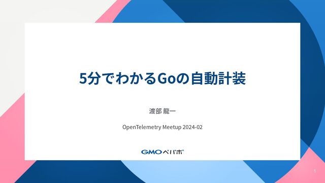 1 5分でわかるGoの⾃動計装 渡部 ⿓⼀ OpenTelemetry Meetup 2024-02