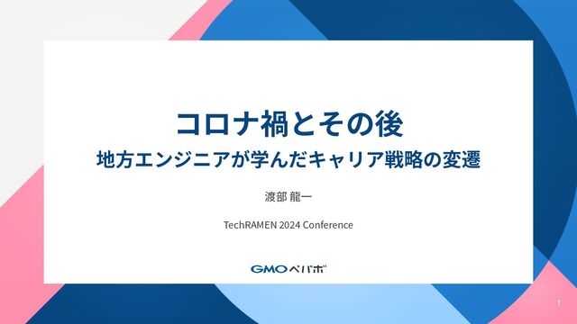 1 コロナ禍とその後 地⽅エンジニアが学んだキャリア戦略の変遷 渡部 ⿓⼀ TechRAMEN 2024 Conference
