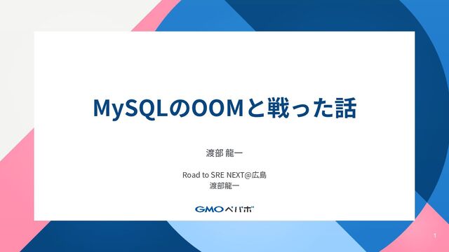 1 MySQLのOOMと戦った話 渡部 ⿓⼀ Road to SRE NEXT@広島 渡部⿓⼀