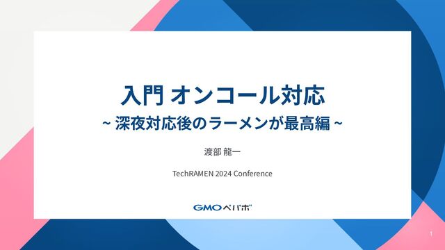1 ⼊⾨ オンコール対応 ~ 深夜対応後のラーメンが最⾼編 ~ 渡部 ⿓⼀ TechRAMEN 2024