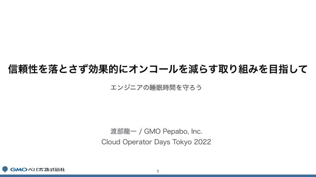 ΤϯδχΞͷਭ࣌ؒΛकΖ͏ ෦ཾҰ(.01FQBCP *OD $MPVE0QFSBUPS%BZT5PLZP ৴པੑΛམͱͣ͞ޮՌతʹΦϯίʔϧΛݮΒ͢औΓΈΛࢦͯ͠