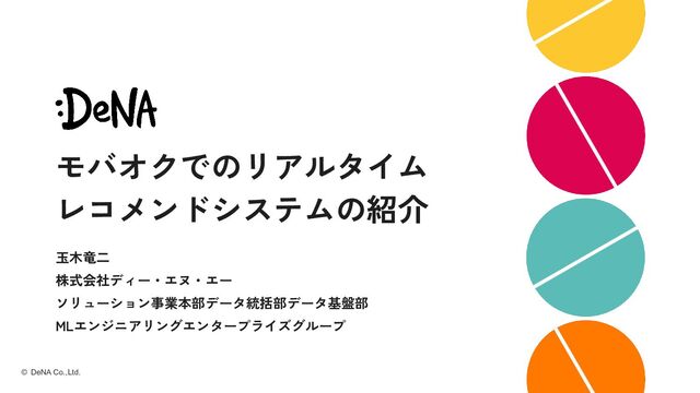 モバオクでのリアルタイム レコメンドシステムの紹介 玉木竜二 株式会社ディー・エヌ・エー ソリューション事業本部データ統括部データ基盤部 MLエンジニアリングエンタープライズグループ © DeNA Co.,Ltd.