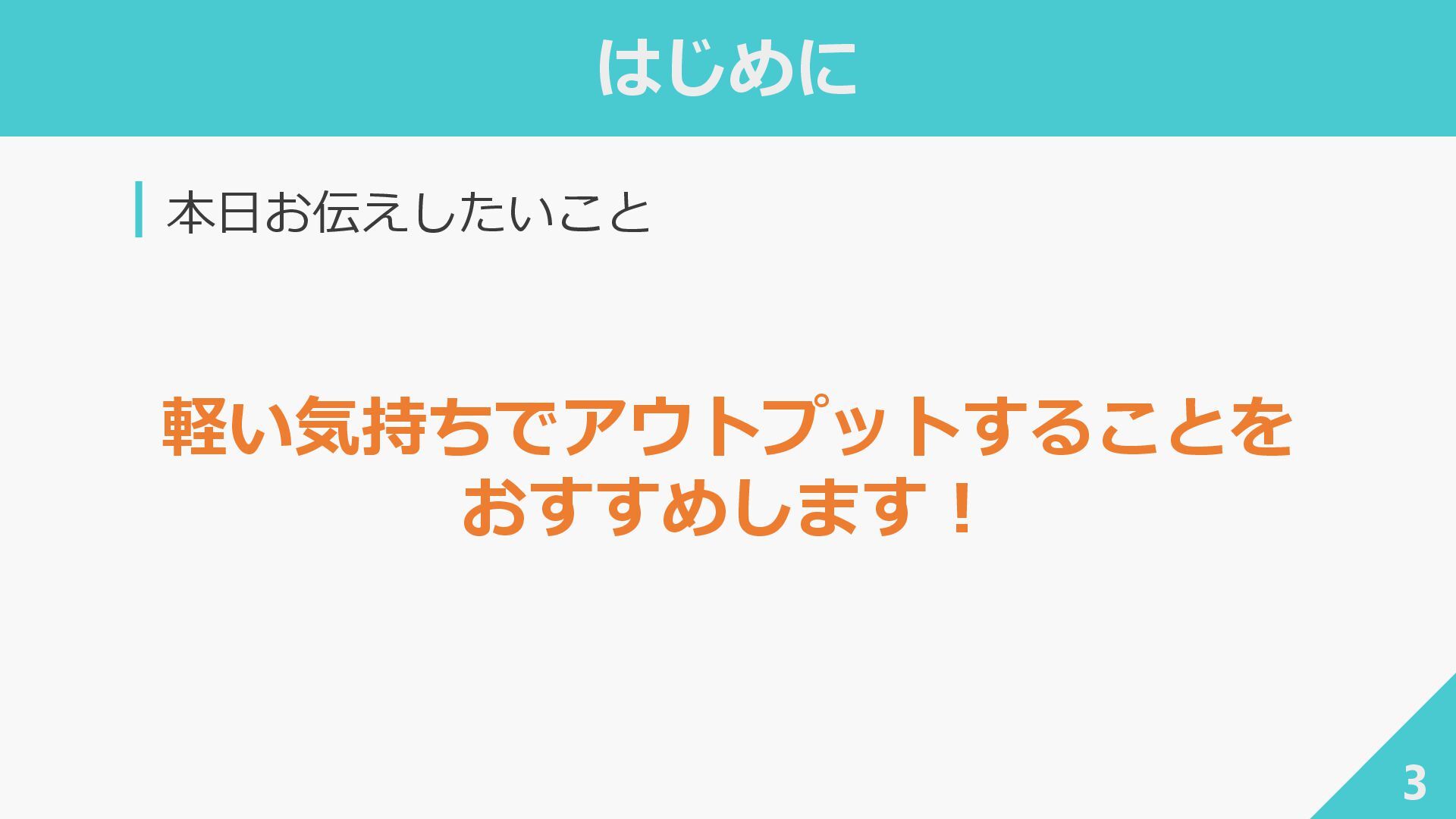はじめに ┃本日お伝えしたいこと 3 軽い気持ちでアウトプットすることを おすすめします!