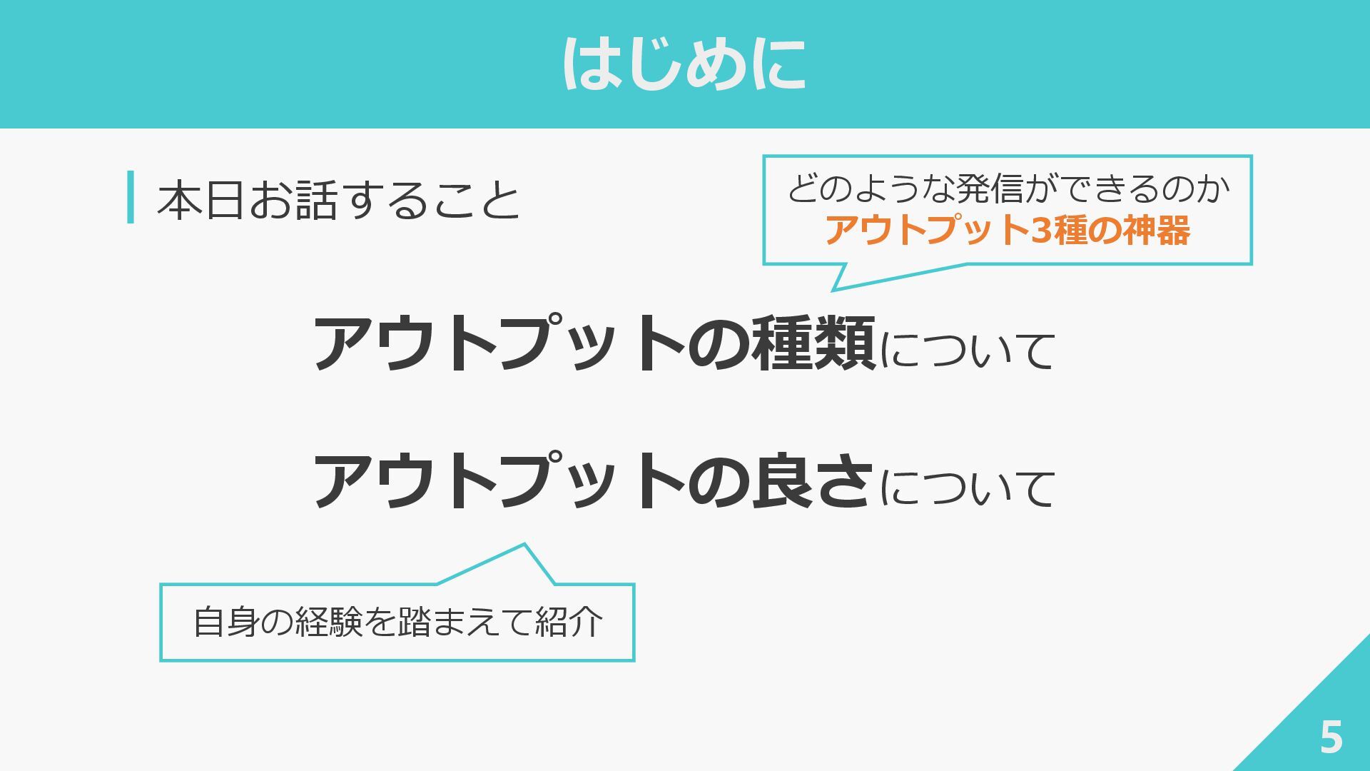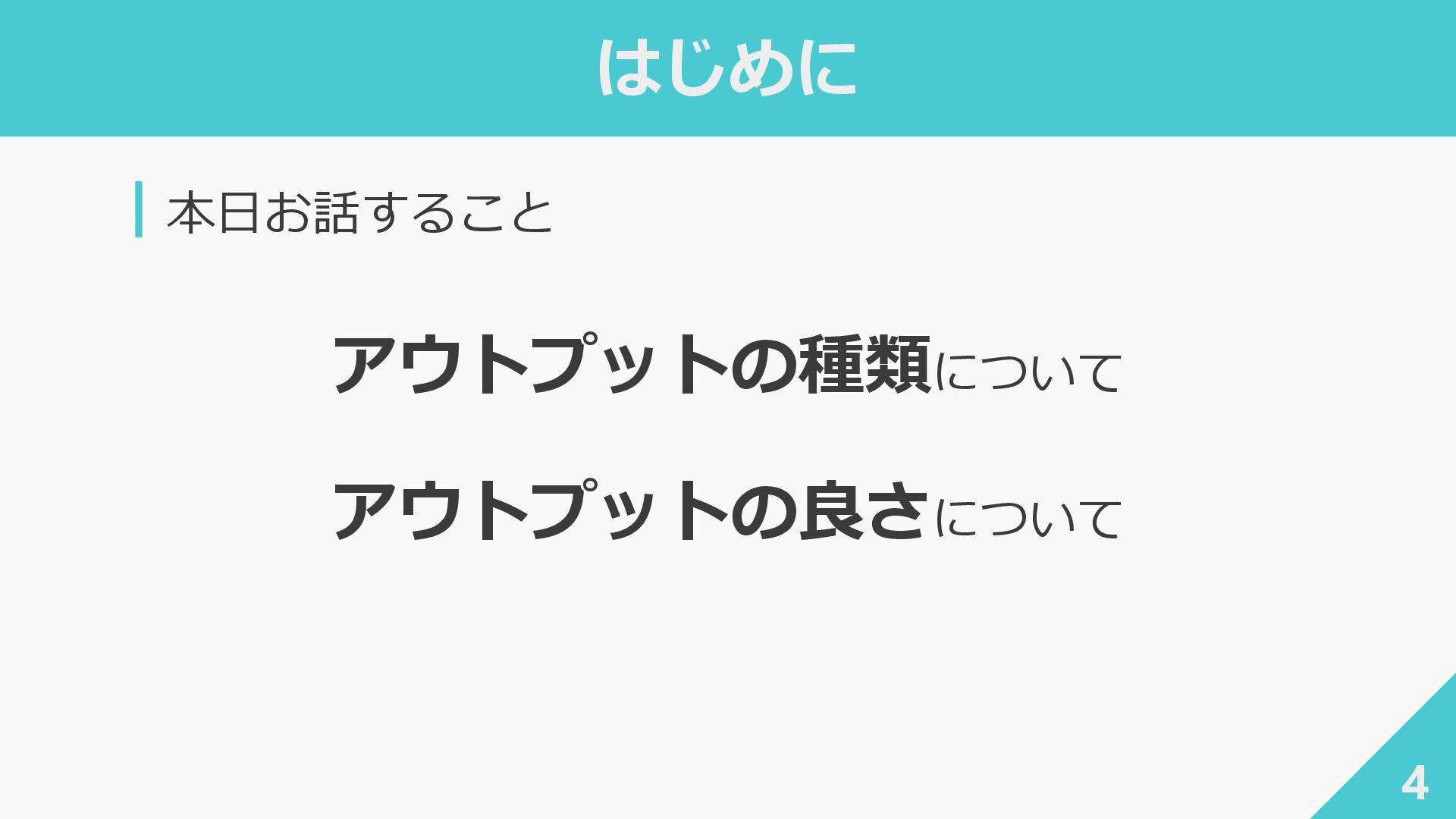 はじめに ┃本日お話すること 4 アウトプットの種類について アウトプットの良さについて