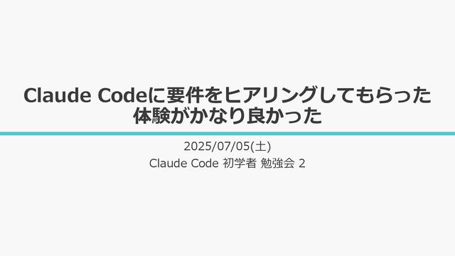 Claude Codeに要件をヒアリングしてもらった 体験がかなり良かった 2025/07/05(土) Claude Code 初学者 勉強会 2