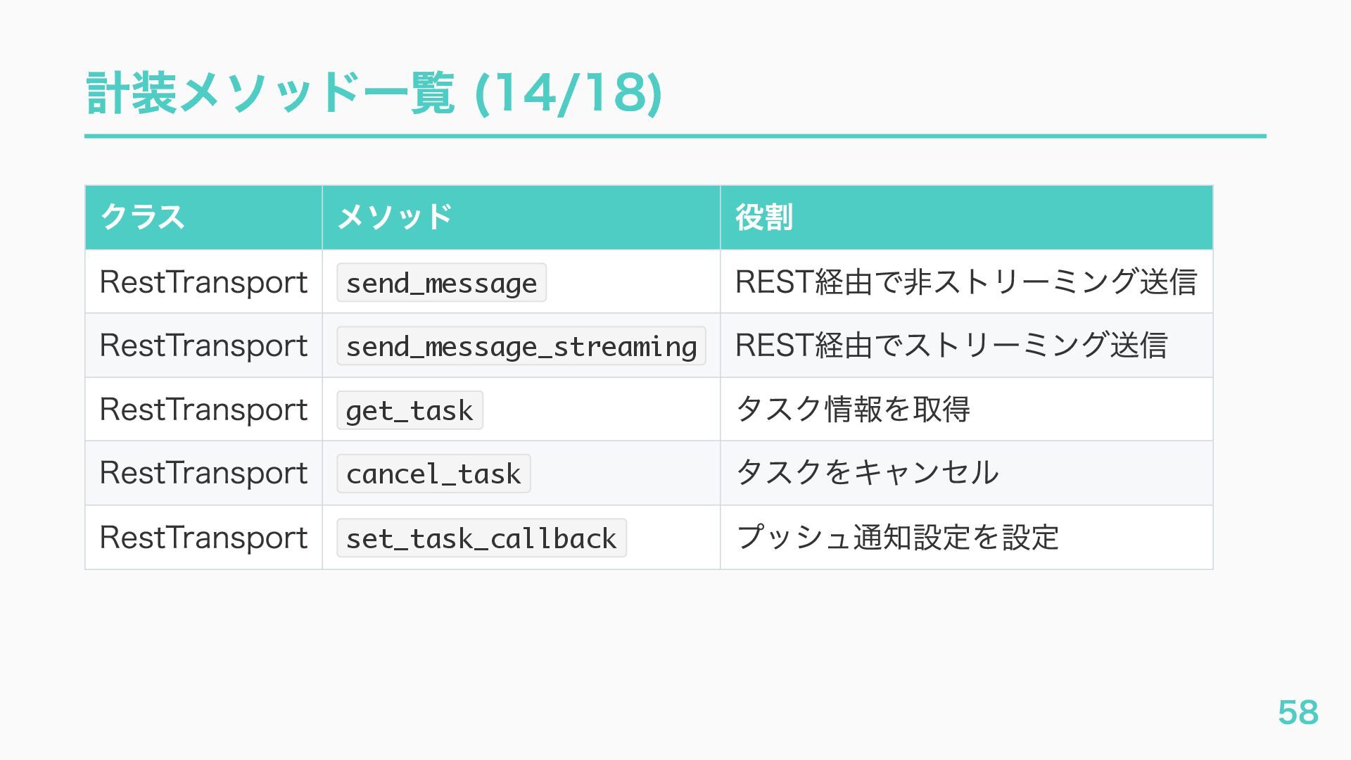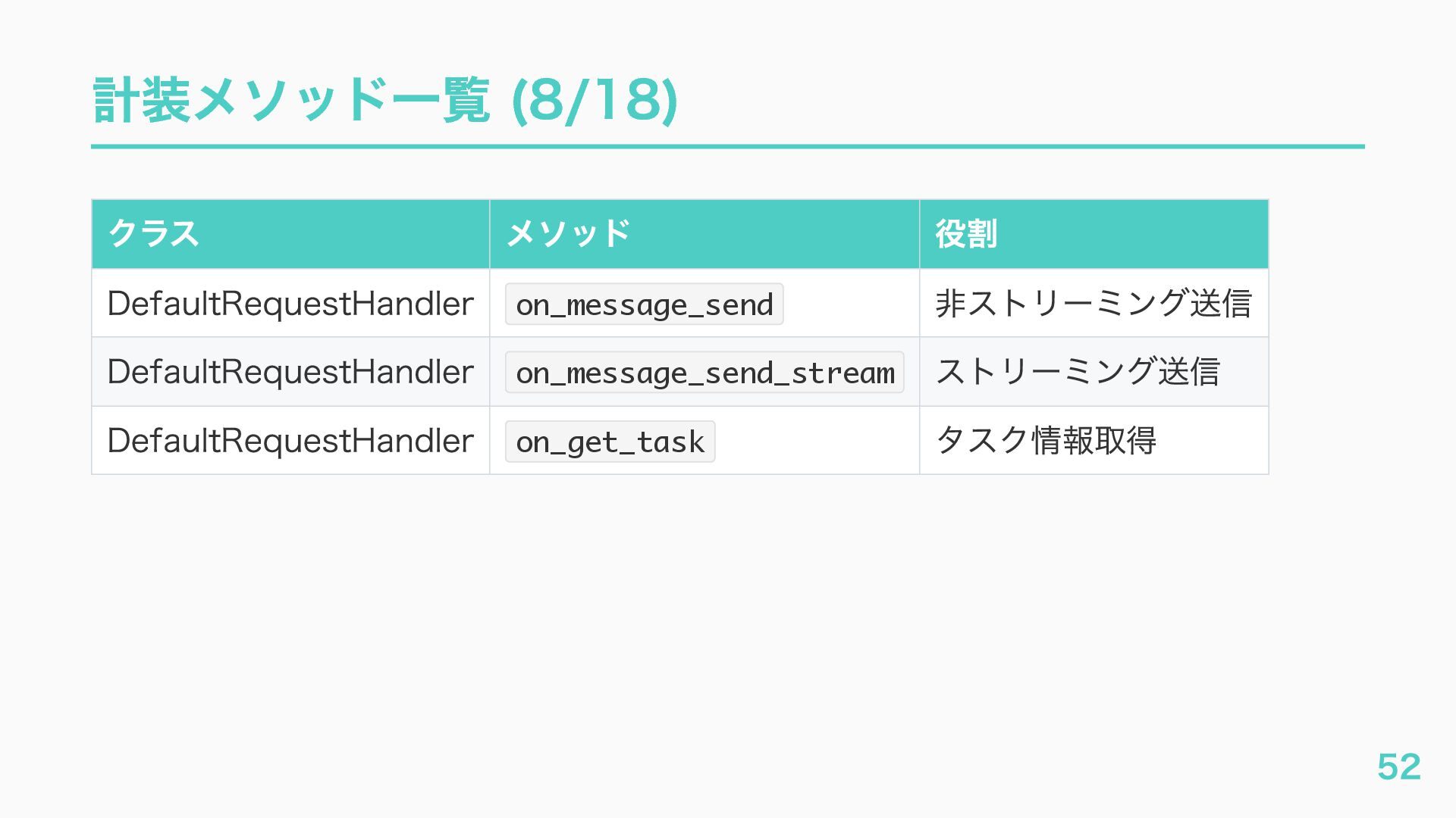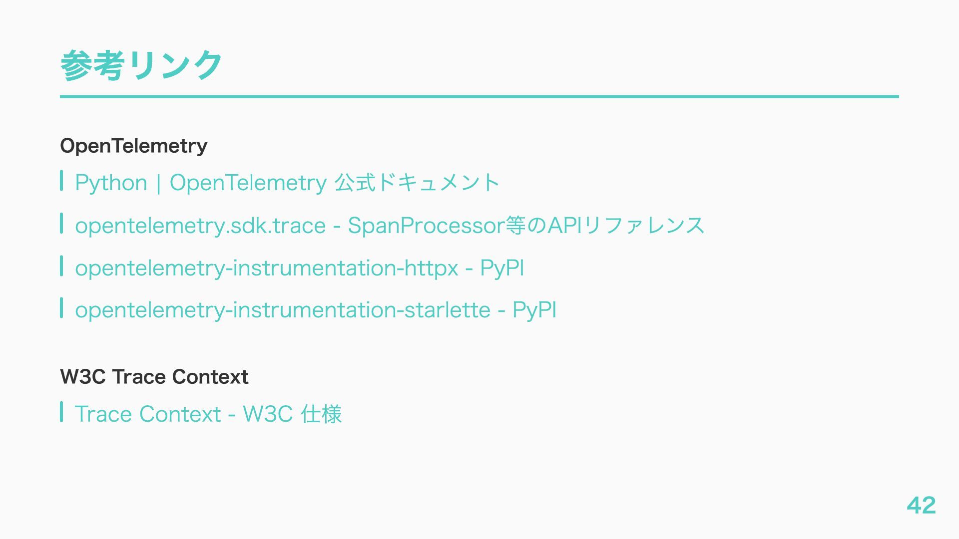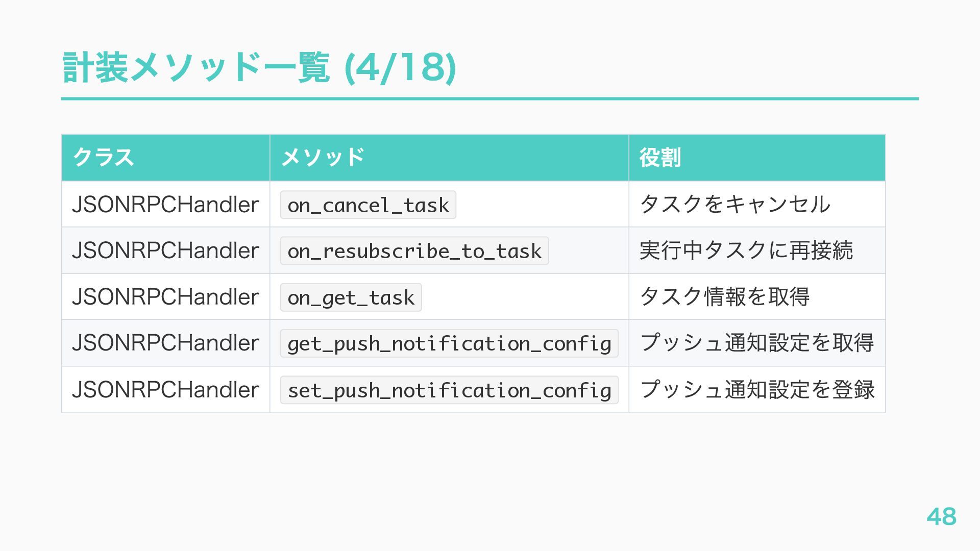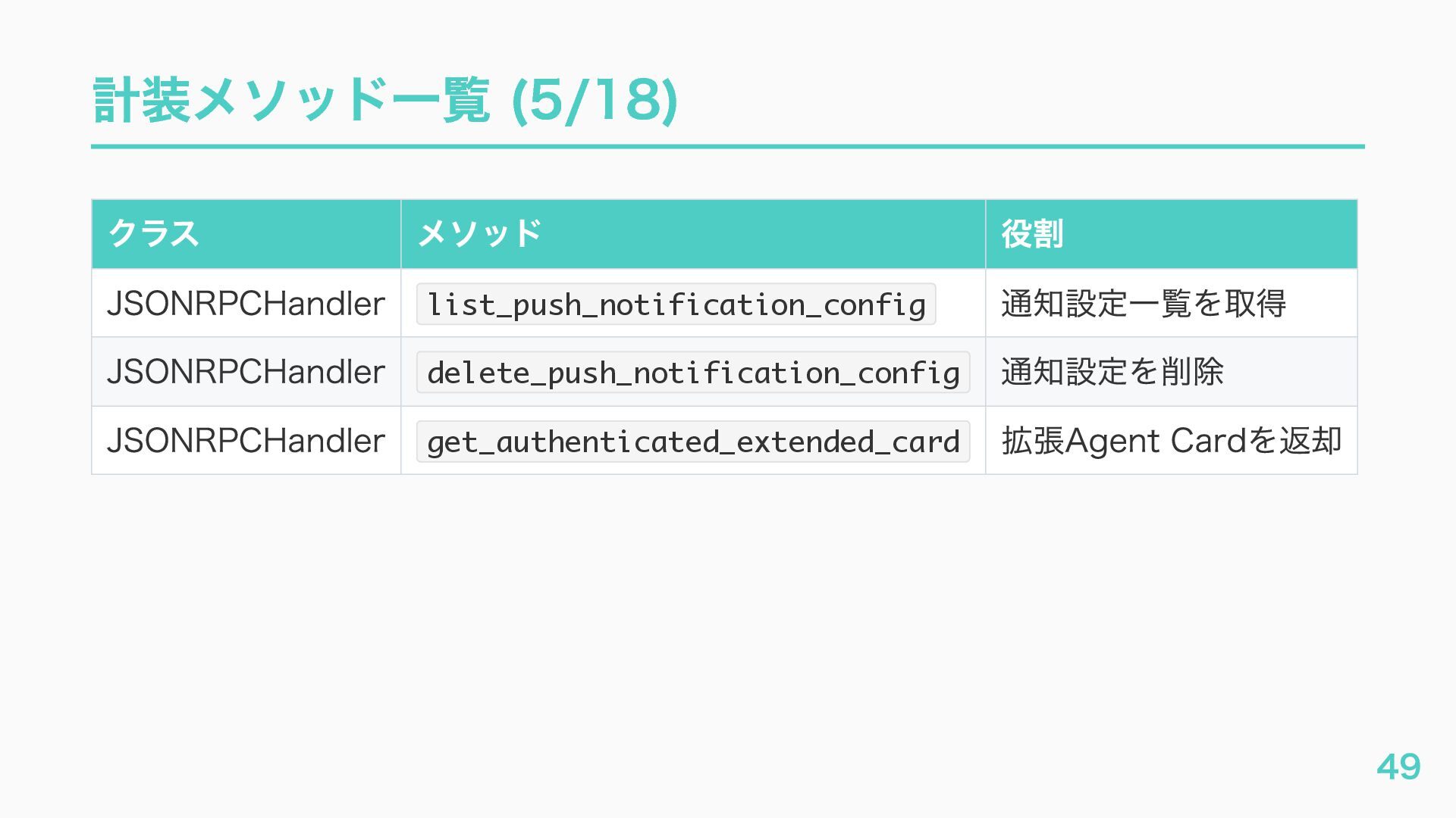 EventQueue関連 "a2a.server.events.event_queue.EventQueue.enqueue_event", "a2a.server.events.event_queue.EventQueue.dequeue_event", ... ] # A2Aプロトコルで重要なHTTPスパン(除外せずにキャッチする) A2A_IMPORTANT_HTTP_PATTERNS = [ "/.well-known/agent", # Agent Card取得(GET /.well-known/agent.json) "/jsonrpc", # JSON-RPC エンドポイント(send_message等) "send_message", # A2A send_message "tasks/sendSubscribe", # A2A streaming ] # スパン名にエージェント名を追加する対象 RENAME_TARGET_SPANS = [ "execute_event_loop_cycle", "chat", ] 36
