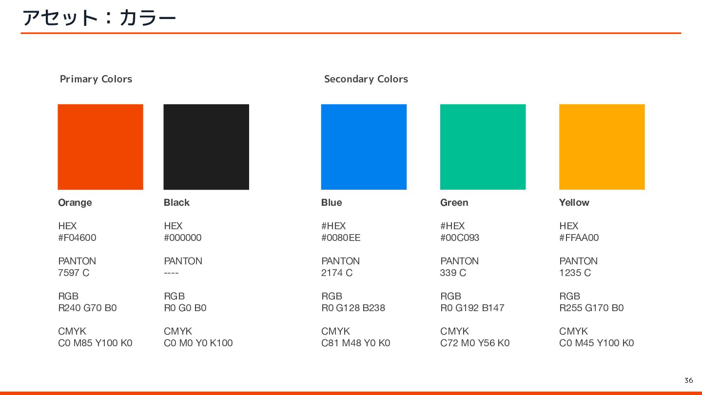 9. 36 アセット:カラー Primary Colors Orange HEX #F04600 PANTON 7597 C