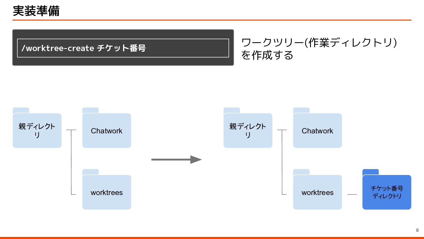 2. 8 実装準備 親ディレクト リ Chatwork worktrees チケット番号 ディレクトリ 親ディレクト リ