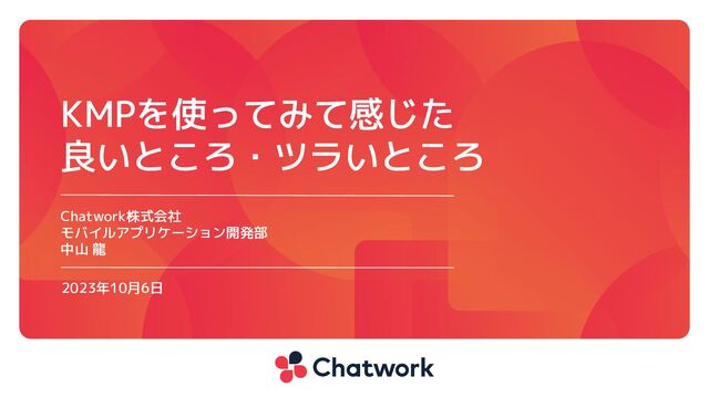 Chatwork株式会社 モバイルアプリケーション開発部 中山 龍 2023年10月6日 KMPを使ってみて感じた 良いところ・ツラいところ