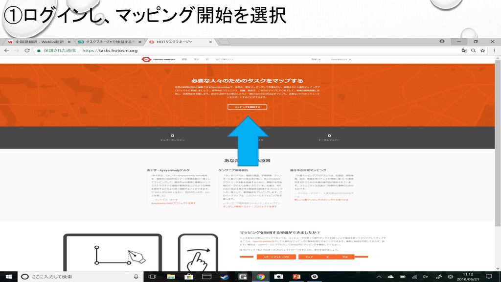 ①ログインし、マッピング開始を選択