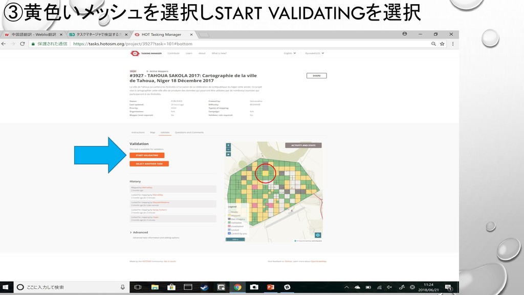③黄色いメッシュを選択しSTART VALIDATINGを選択
