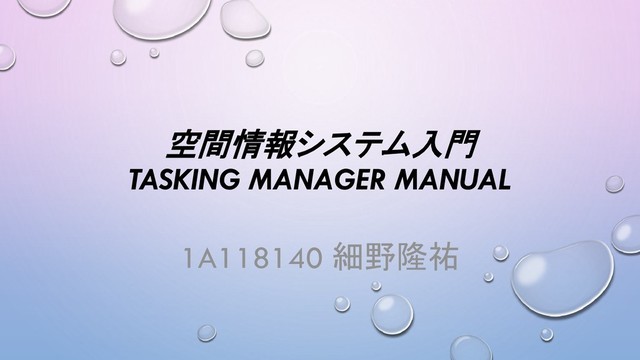 空間情報システム入門 TASKING MANAGER MANUAL 1A118140 細野隆祐