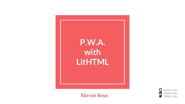 Note: This is an improved version of my previous presentation (https://speakerdeck.com/rzvnrosu/progressive-web-apps-with-lithtml), being themed for a local JavaScript Meetup in Bucharest, Romania.