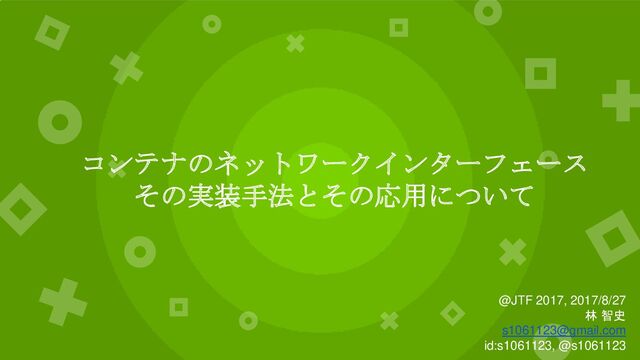 コンテナのネットワークインターフェース その実装手法とその応用について @JTF 2017, 2017/8/27 林 智史