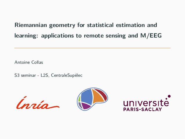 Title — Riemannian geometry for statistical estimation and learning: applications to remote sensing and M/EEG data analysis