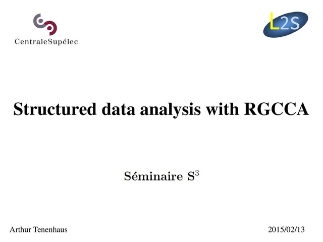 multivariate calibration problem in chemistry solved by the PLS method. In Proc. Conf. Matrix Pencils, Ruhe A. & Kåstrøm B. (Eds), March 1982, Lecture Notes in Mathematics, Springer Verlag, Heidelberg, p. 286-293. Redundancy analysis Barker M. & Rayens W. (2003): Partial least squares for discrimination, Journal of Chemometrics, 17, 166-173. Regularized CCA Vinod H. D. (1976): Canonical ridge and econometrics of joint production. Journal of Econometrics, 4, 147–166. Inter-battery factor analysis Tucker L.R. (1958): An inter-battery method of factor analysis, Psychometrika, vol. 23, n°2, pp. 111-136. MCOA Chessel D. and Hanafi M. (1996): Analyse de la co-inertie de K nuages de points. Revue de Statistique Appliquée, 44, 35-60 SSQCOV Hanafi M. & Kiers H.A.L. (2006): Analysis of K sets of data, with differential emphasis on agreement between and within sets, Computational Statistics & Data Analysis, 51, 1491-1508. SUMCOR Horst P. (1961): Relations among m sets of variables, Psychometrika, vol. 26, pp. 126-149. SSQCOR Kettenring J.R. (1971): Canonical analysis of several sets of variables, Biometrika, 58, 433-451 MAXDIFF Van de Geer J. P. (1984): Linear relations among k sets of variables. Psychometrika, 49, 70-94. PLS path modeling Tenenhaus M., Esposito Vinzi V., Chatelin Y.-M., Lauro C. (2005): PLS path modeling. Computational Statistics and Data (mode B) Analysis, 48, 159-205. Generalized Orthogonal Vivien M. & Sabatier R. (2003): Generalized orthogonal multiple co-inertia analysis (-PLS): new multiblock component MCOA and regression methods, Journal of Chemometrics, 17, 287-301. Caroll’s GCCA Carroll, J.D. (1968): A generalization of canonical correlation analysis to three or more sets of variables, Proc. 76th Conv. Am. Psych. Assoc., pp. 227-228. special cases of RGCCA (among others) two-block case multi-block case