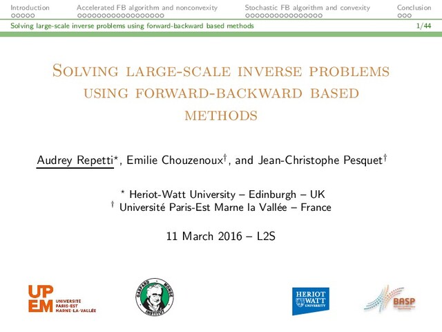 Title — Solving large-scale inverse problems using forward-backward based methods