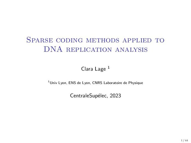Abstract — Cellular replication is widely studied using modern imaging methods. This work aims to understand DNA replication at its most detailed level, which can not be achieved with microscopy images. The data combines genetic sequencing and replication progress [1]. Our goal is to estimate important parameters such as the positions of replication origins in the DNA strand, speed of replication and direction. We are going to discuss a time-scale dictionary approach with several sparse coding methods: LASSO, Matching Pursuit and Sliding Frank-Wolfe [2,4] (off-the-grid approach). A hybrid method [3], that considers speed as a discrete parameter and position as continuous, will be presented and compared to others in the case of DNA replication. We will also discuss other ways of approaching this problem by reformulating it as an inverse problem.