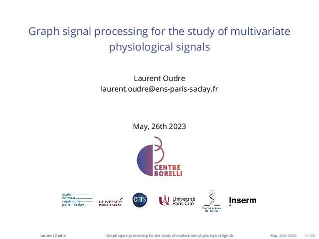 Biography — Laurent Oudre is currently a Full Professor at Centre Borelli of the Ecole Normale Supérieure Paris-Saclay. He leads a team of about ten young researchers and has been working for about fifteen years on signal processing, pattern recognition and machine learning for time series. His work covers a wide range of issues (event detection, feature extraction, unsupervised or semi-supervised approaches, representation learning and graph signal processing). His scientific projects are mainly focused on AI applications in health and industry, often with a strong interdisciplinary component. He is also involved in initiatives around reproducible research and acculturation to AI (especially for the medical community). He is the author of more than fifty patents and articles in international peer-reviewed journals and conferences.