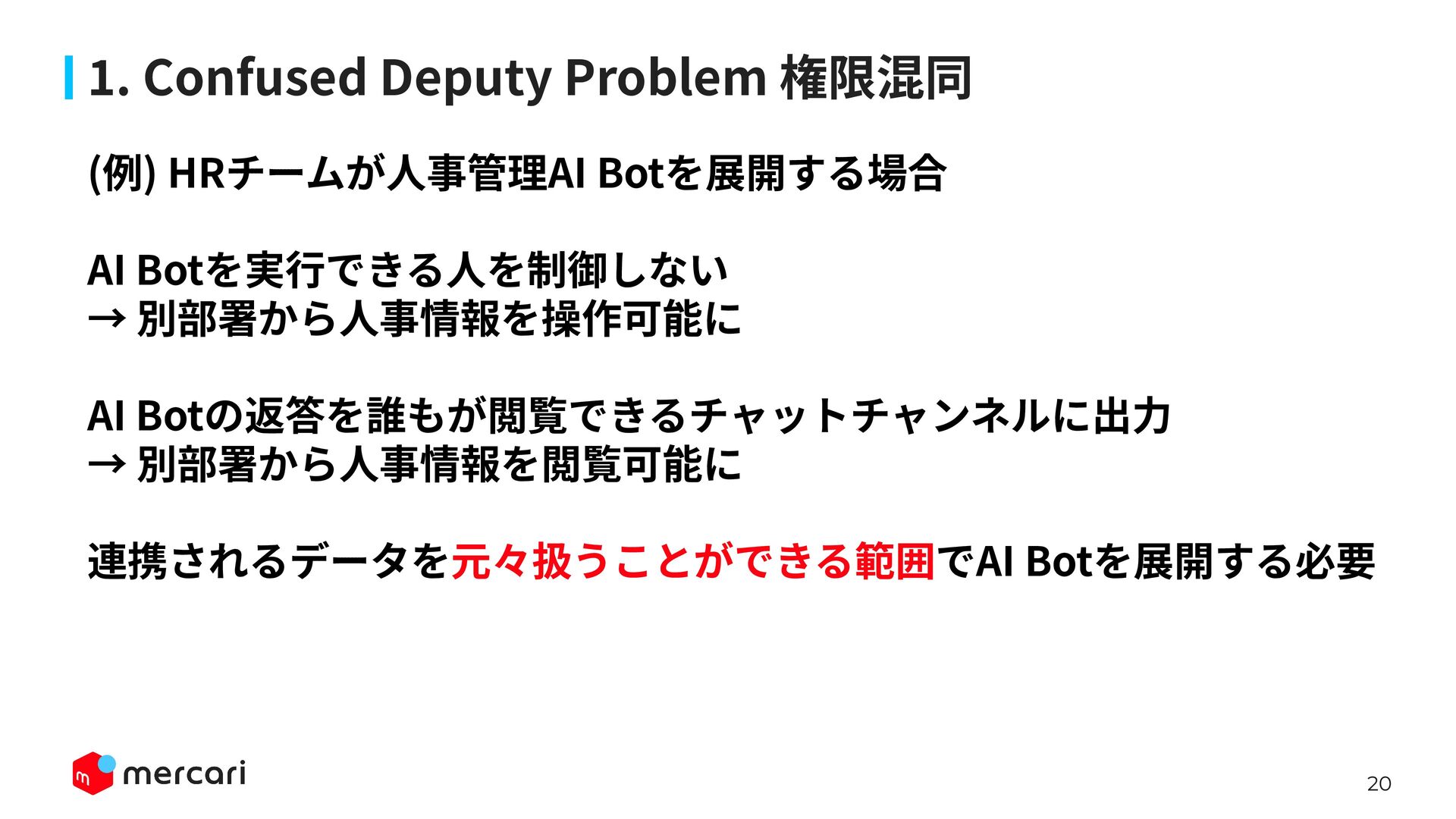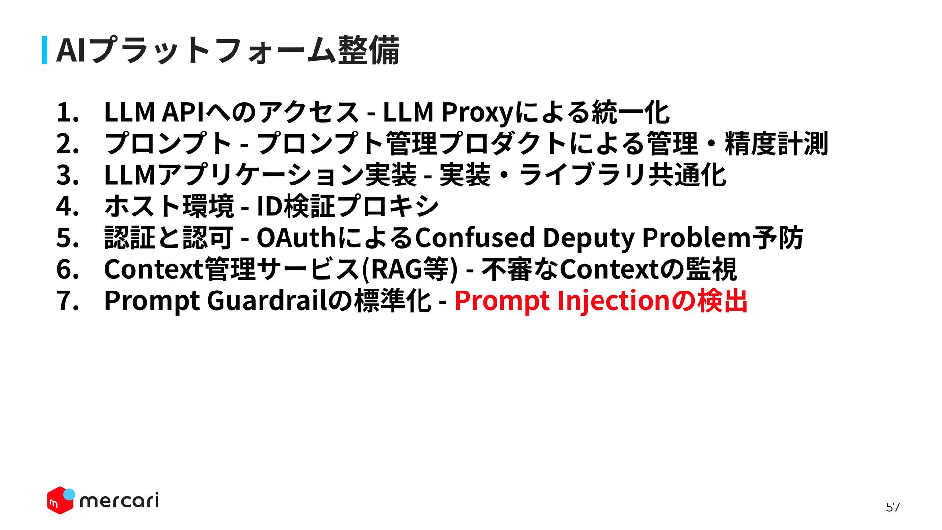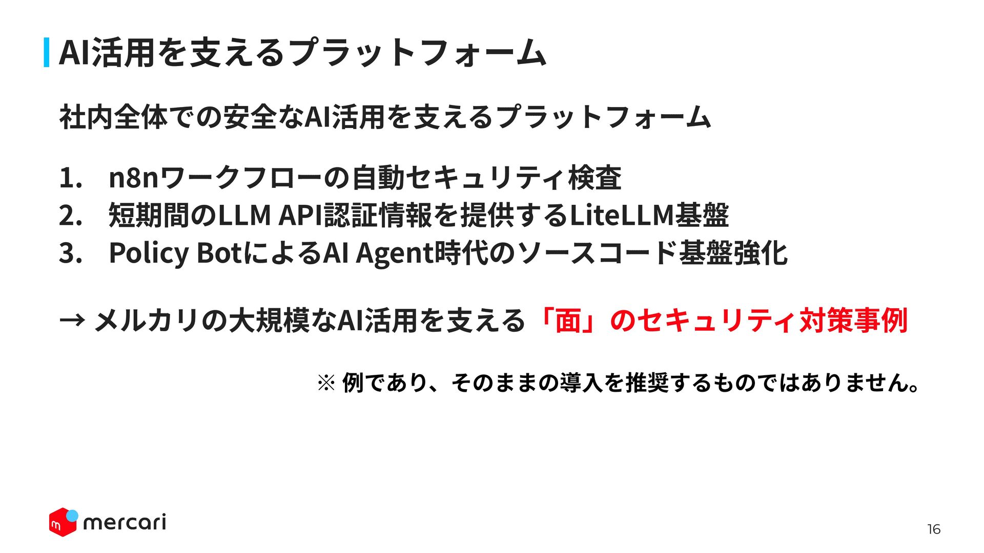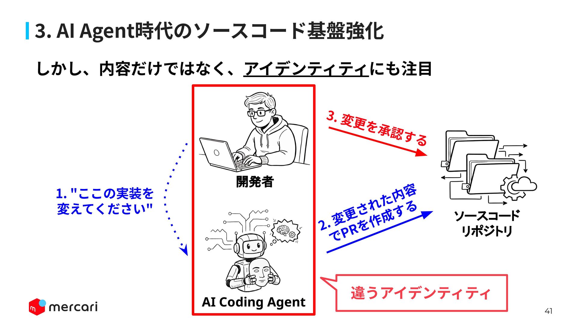 AIセキュリティではAIに特有の対策だけでなく、従来からのセキュリティ対策が依然として有効であり、自律型エージェントの時代にむしろ重要性が増しています。適切なアイデンティティ管理とアクセス制御、最小権限の原則や変更管理が欠ければ、AIのスケールの速さによって脆弱性がすぐに顕在化します。 本講演では、代表的な課題と対処法、そして既存のセキュリティ原則から得られる示唆を議論します。最後に、MercariにおけるAIセキュリティへの取り組みから生産性向上とセキュリティ確保の両立について紹介します。