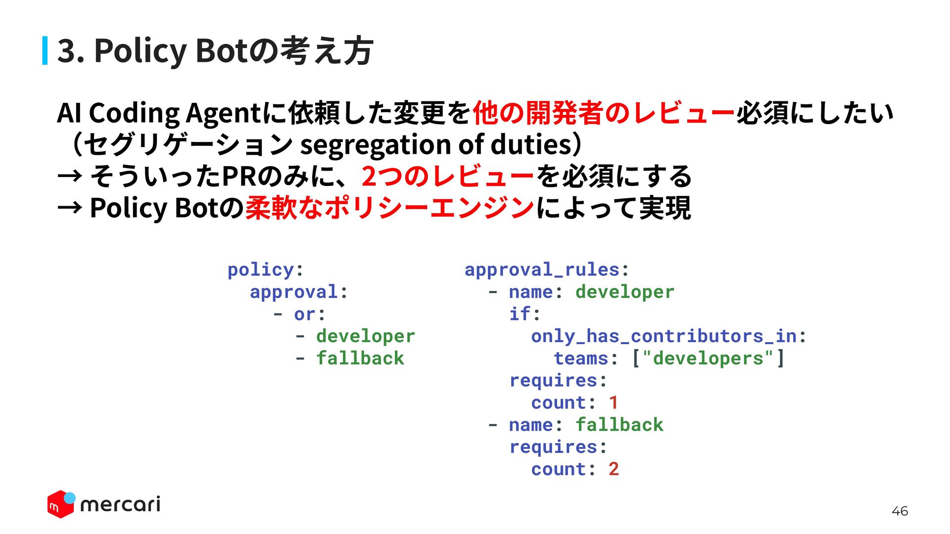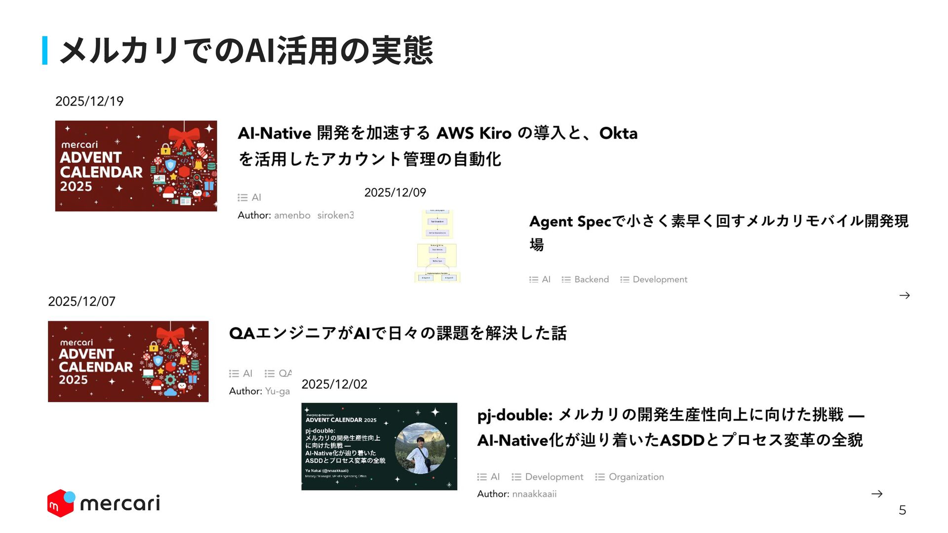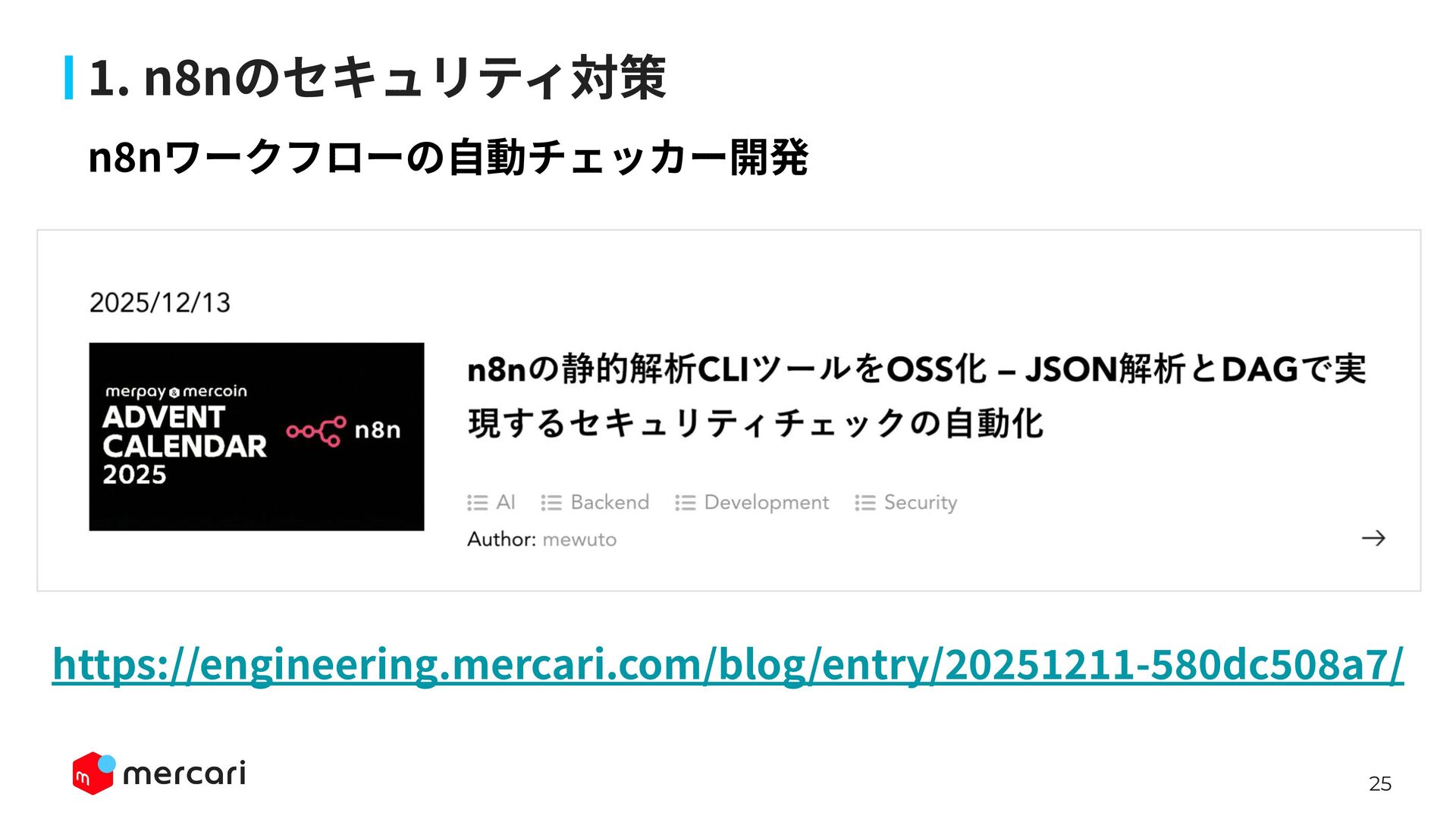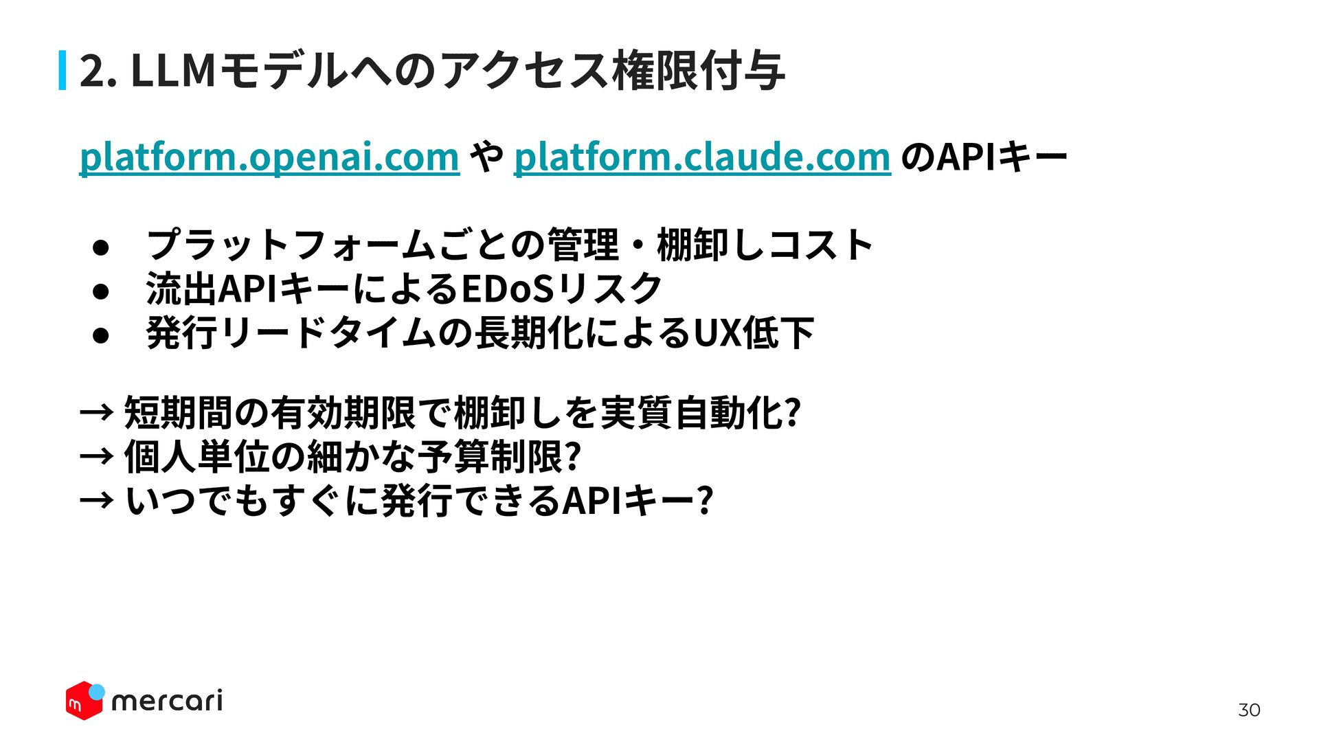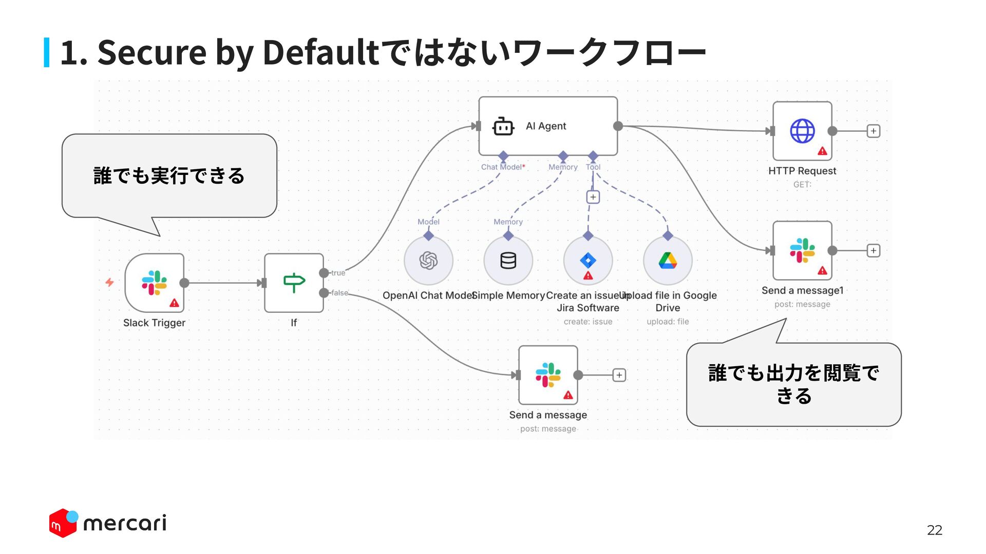 AIセキュリティではAIに特有の対策だけでなく、従来からのセキュリティ対策が依然として有効であり、自律型エージェントの時代にむしろ重要性が増しています。適切なアイデンティティ管理とアクセス制御、最小権限の原則や変更管理が欠ければ、AIのスケールの速さによって脆弱性がすぐに顕在化します。 本講演では、代表的な課題と対処法、そして既存のセキュリティ原則から得られる示唆を議論します。最後に、MercariにおけるAIセキュリティへの取り組みから生産性向上とセキュリティ確保の両立について紹介します。