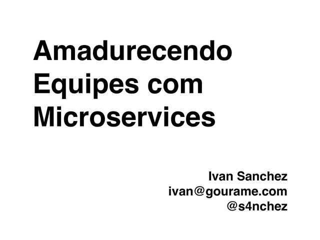 Amadurecendo Equipes com Microservices Ivan Sanchez