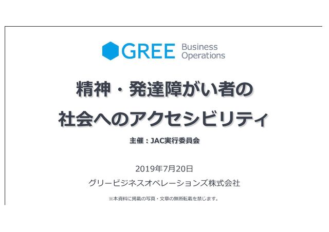 Copyright © GREE Business Operations, Inc. All Rights Reserved. ⽇本中の障がい者が活躍できる社会の実現を。