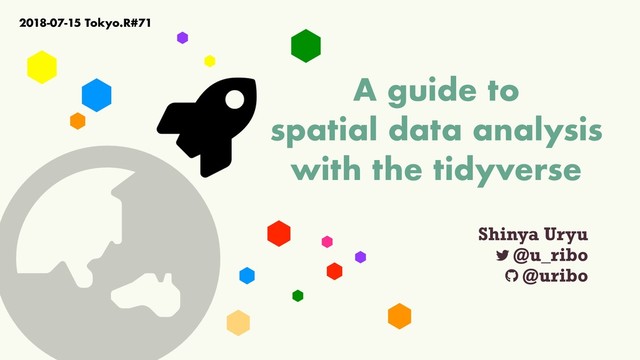 sf, represents simple features as R objects. Simple feature st_polygon(list( rbind( st_point(c(1, 1)), st_point(c(2, 1)), st_point(c(2, 2)), st_point(c(1, 2)), st_point(c(1 ,1))))) #> POLYGON ((1 1, 2 1, 2 2, 1 2, 1 1)) st_point(c(1, 2)) # X, Y Coordinates #> POINT (1 2) st_point(c(1, 2, 3)) # Added Z dimensions #> POINT Z (1 2 3) st_linestring(matrix(1:4, ncol = 2)) #> LINESTRING (1 3, 2 4) all functions start with the prefix “st_” (spatial and temporal)