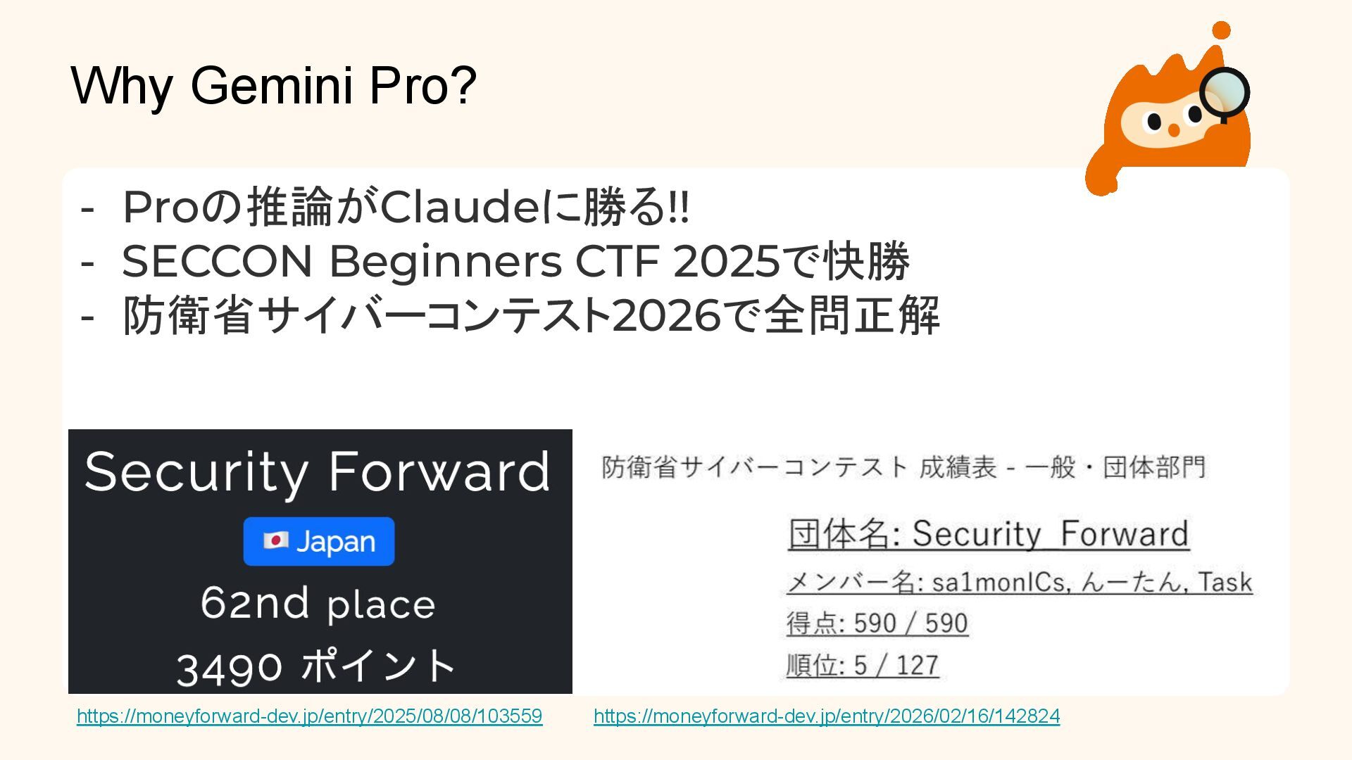 CTF(Capture The Flag)において、AI(特にGemini Pro)をどのように活用しているか、実際の事例を交えて紹介しています。