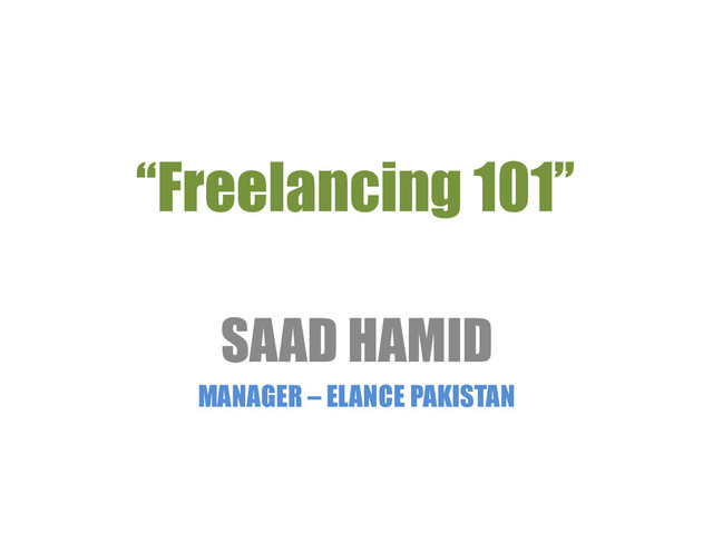 This session was prepared by Saad Hamid (Manager - Elance Pakistan) for the audience of the Digital Youth Summit 2014 in Peshawar.