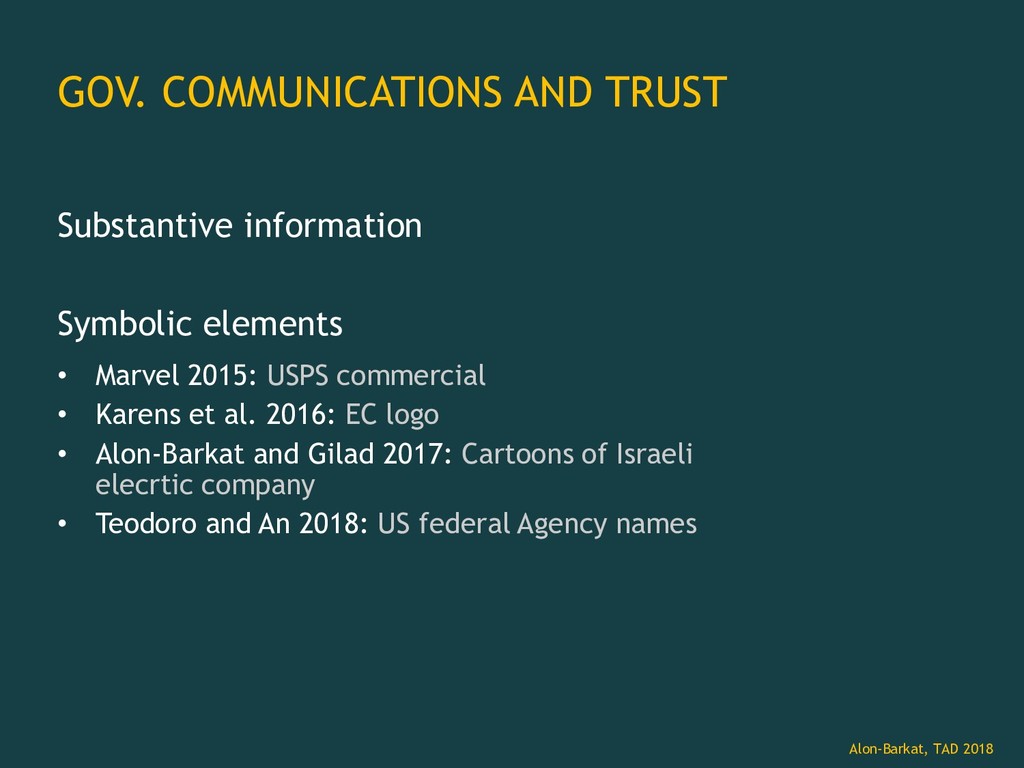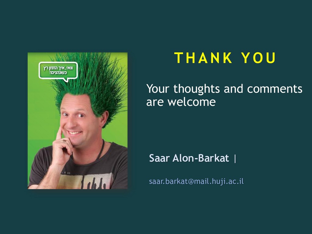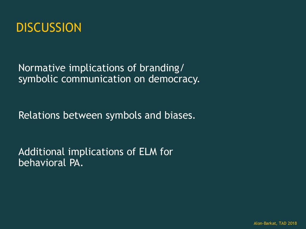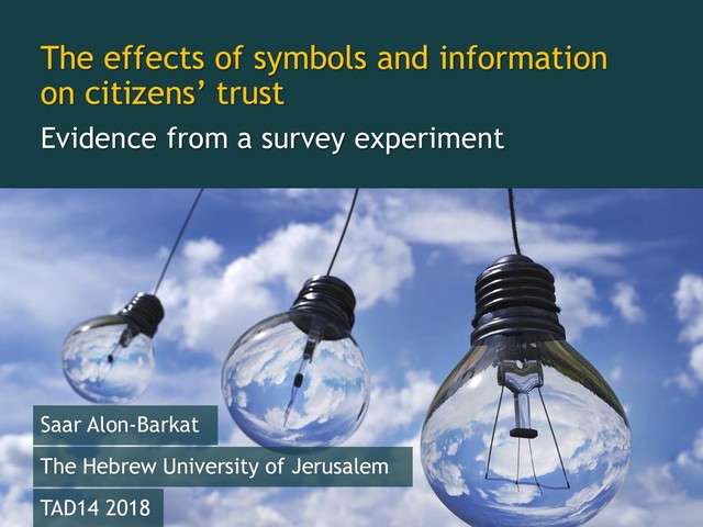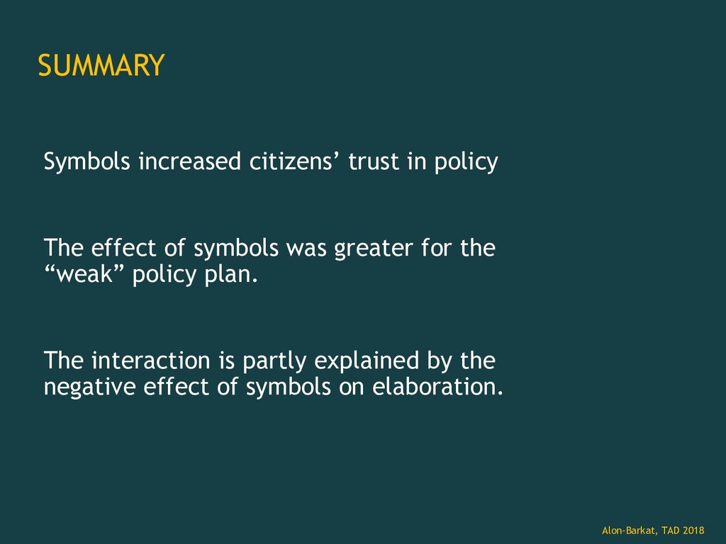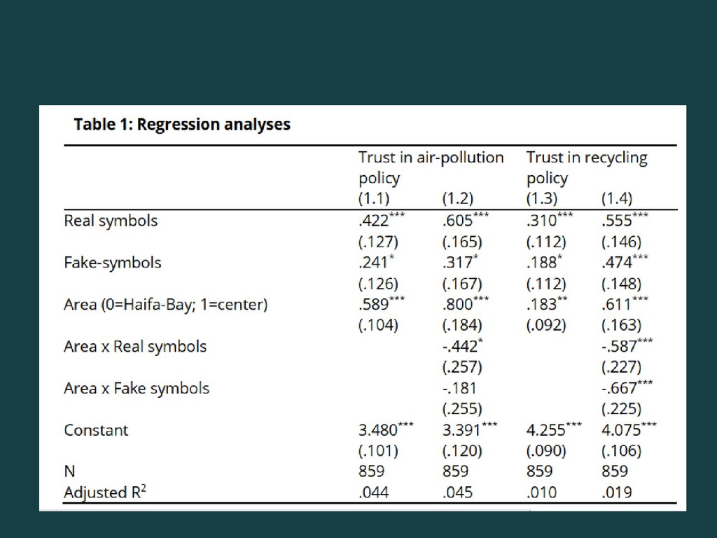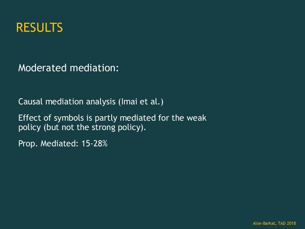 Haifa-Bay through: EXPERIMENTAL DESIGN (Weak) (Strong) • Decreasing the supervision of the factories in Haifa-Bay… • Increasing the supervision of the factories in Haifa- Bay… • Raising citizens’ awareness of the efforts to improve air quality… • Reduction of smoke emissions from vehicles in Haifa Bay… Alon-Barkat, TAD 2018