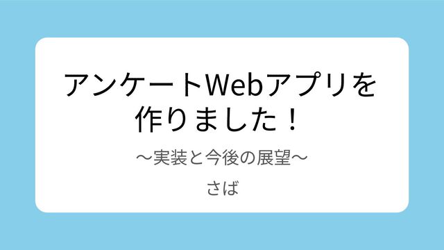アンケートWebアプリを 作りました! 〜実装と今後の展望〜 さば