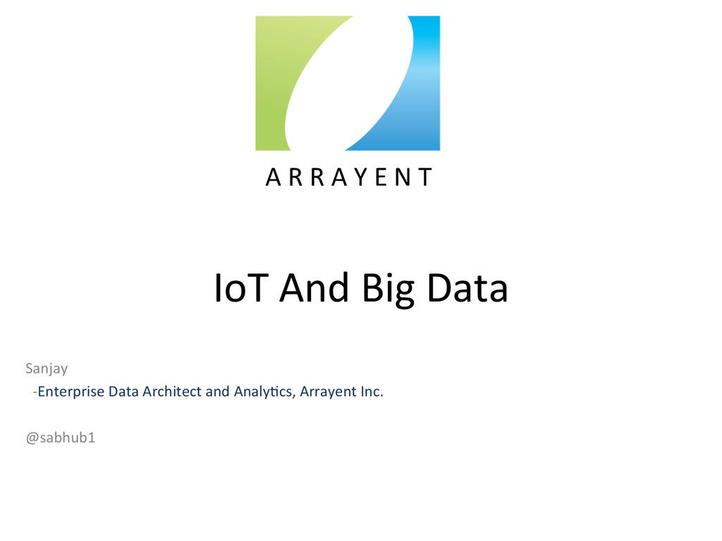 Deluge – Exis:ng Data Center Capacity will be put to test • A new focus of real :me analy:cs – Exis:ng Real Time Components will have to rethink what actually means in IoT • Data Reten:on/Storage reach a new level – Cloud Storage Needs will surpass what we have now • Network Bandwidth – New inven:ons are needed • Privacy/Security – End of the Day Consumer will take control • Skill Set – We need lot more data engineers and scien:sts • Data Science – Need “Data Science on the Wire” • Value of Data/Time to react – Window is Gefng Shorter
