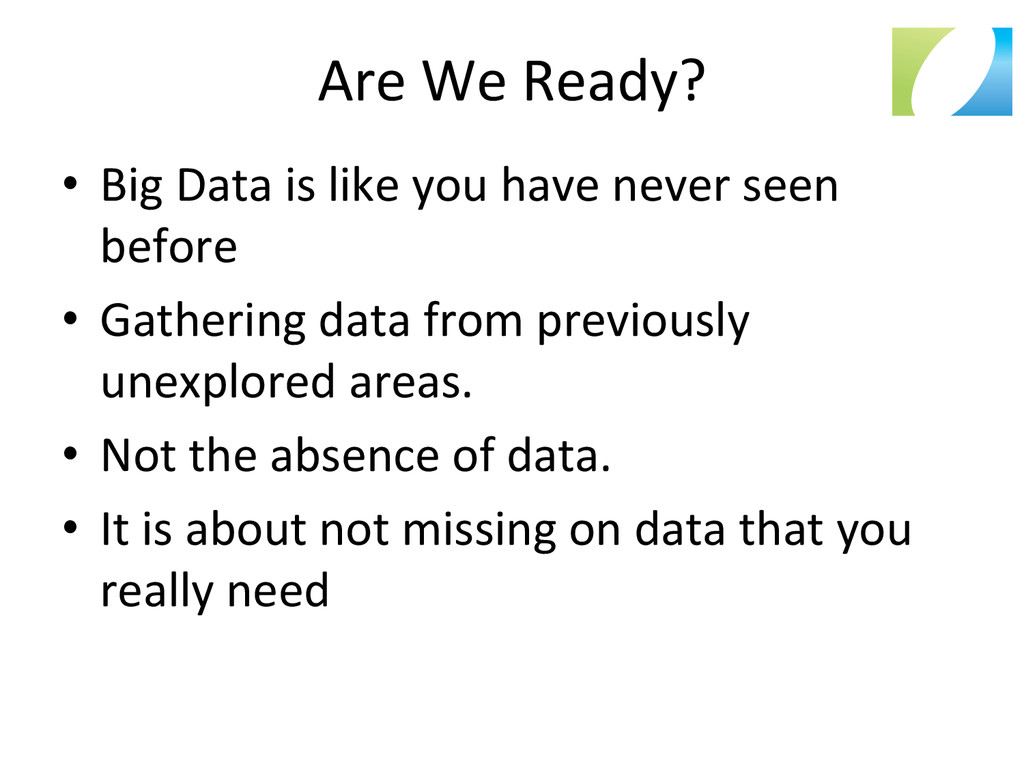 you have never seen before • Gathering data from previously unexplored areas. • Not the absence of data. • It is about not missing on data that you really need