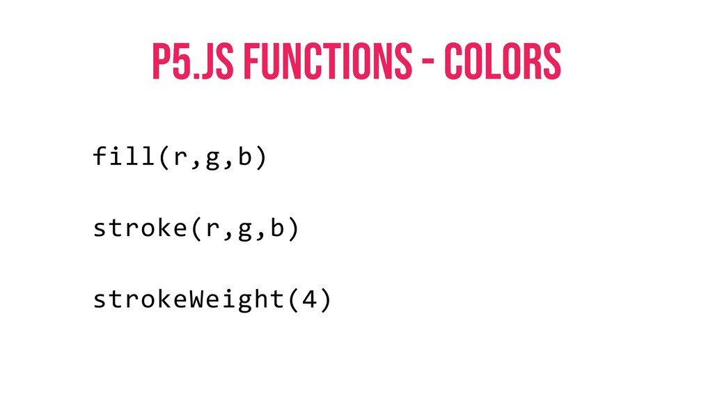 fill(r,g,b) stroke(r,g,b) strokeWeight(4)