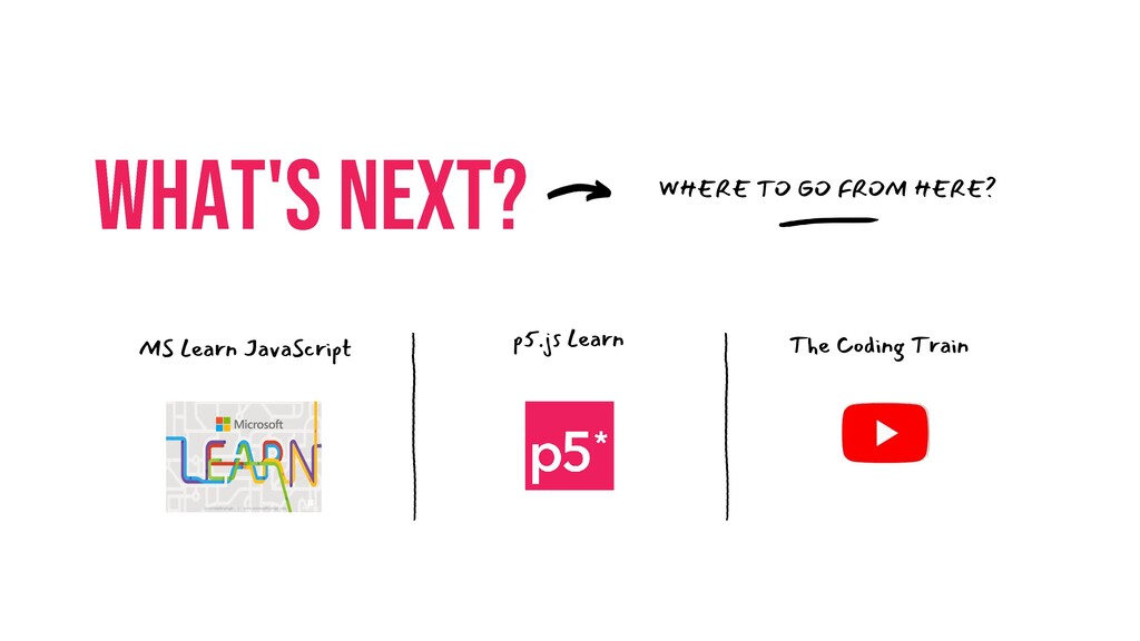 WHERE TO GO FROM HERE? MS Learn JavaScript p5.js Learn