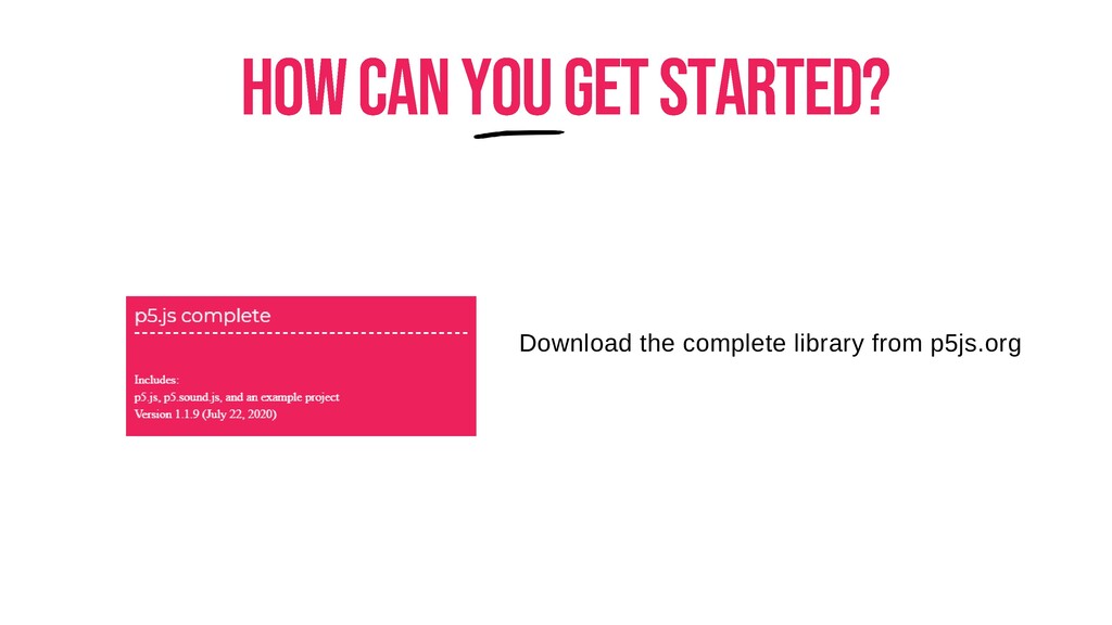 Download the complete library from p5js.org
