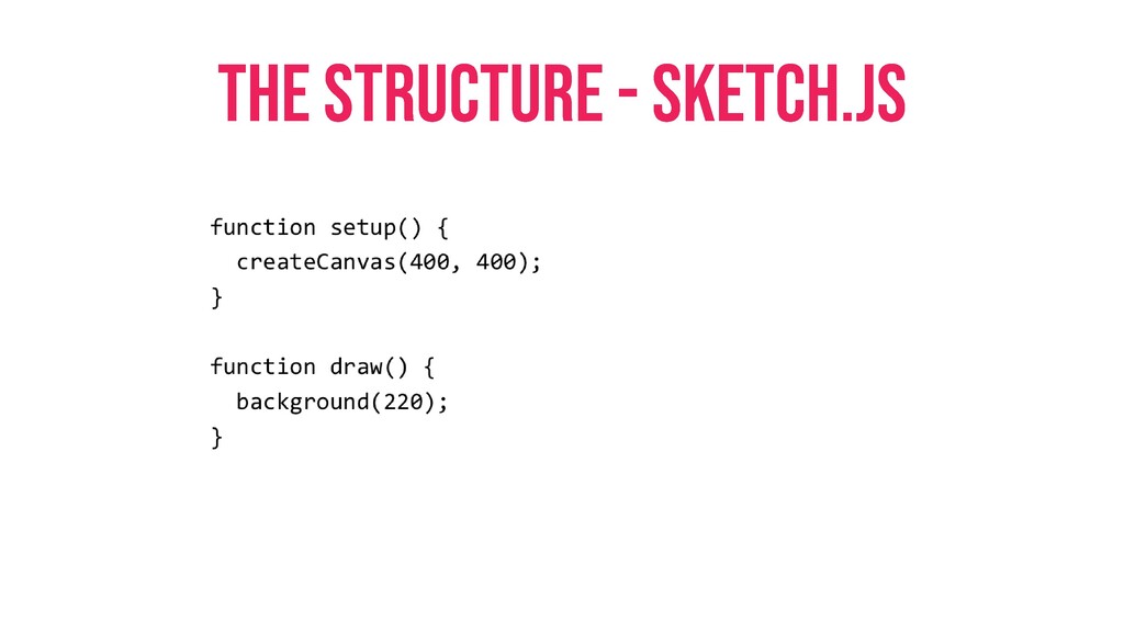Sketch.js * Displays the JS Code written in Sketch.js Index.html