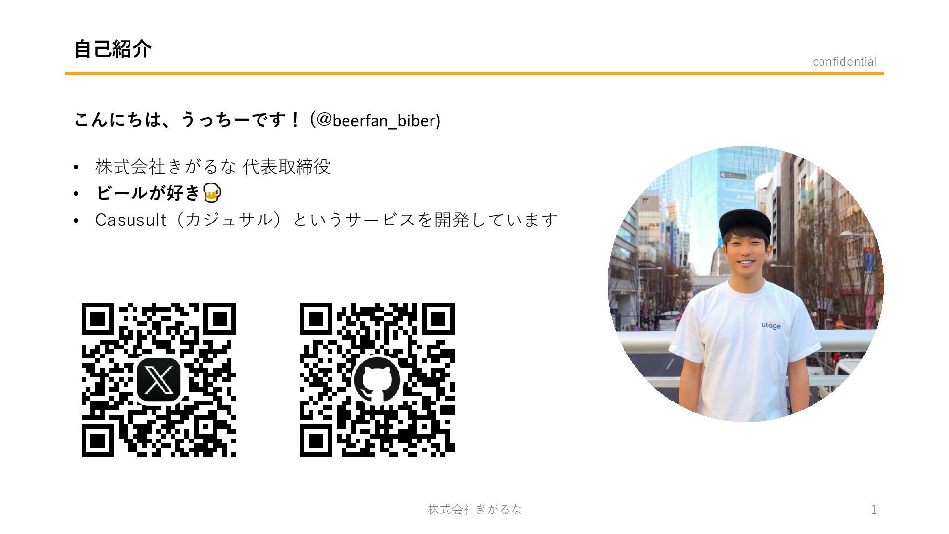 confidential 自己紹介 株式会社きがるな 1 こんにちは、うっちーです! (@beerfan_biber) • 株式会社きがるな 代表取締役 •