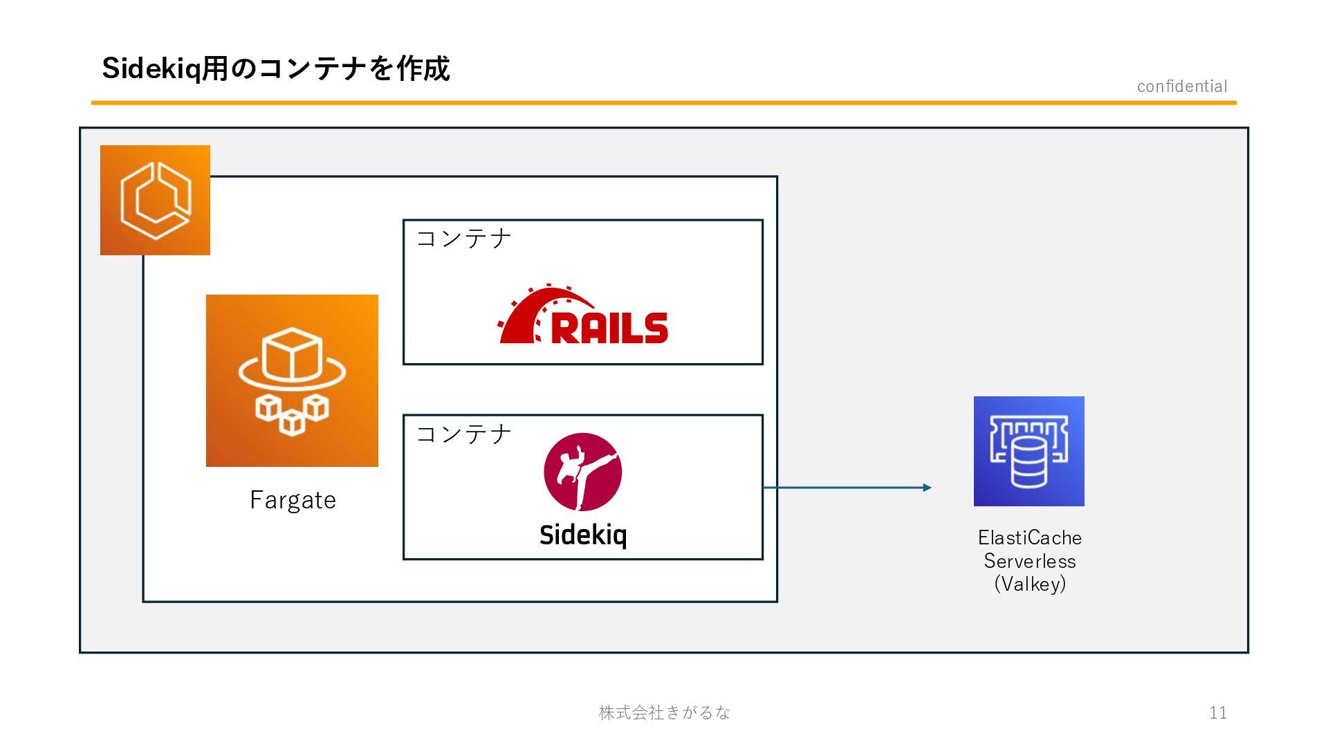 confidential Sidekiq用のコンテナを作成 株式会社きがるな 11 Fargate ElastiCache Serverless (Valkey) コンテナ コンテナ