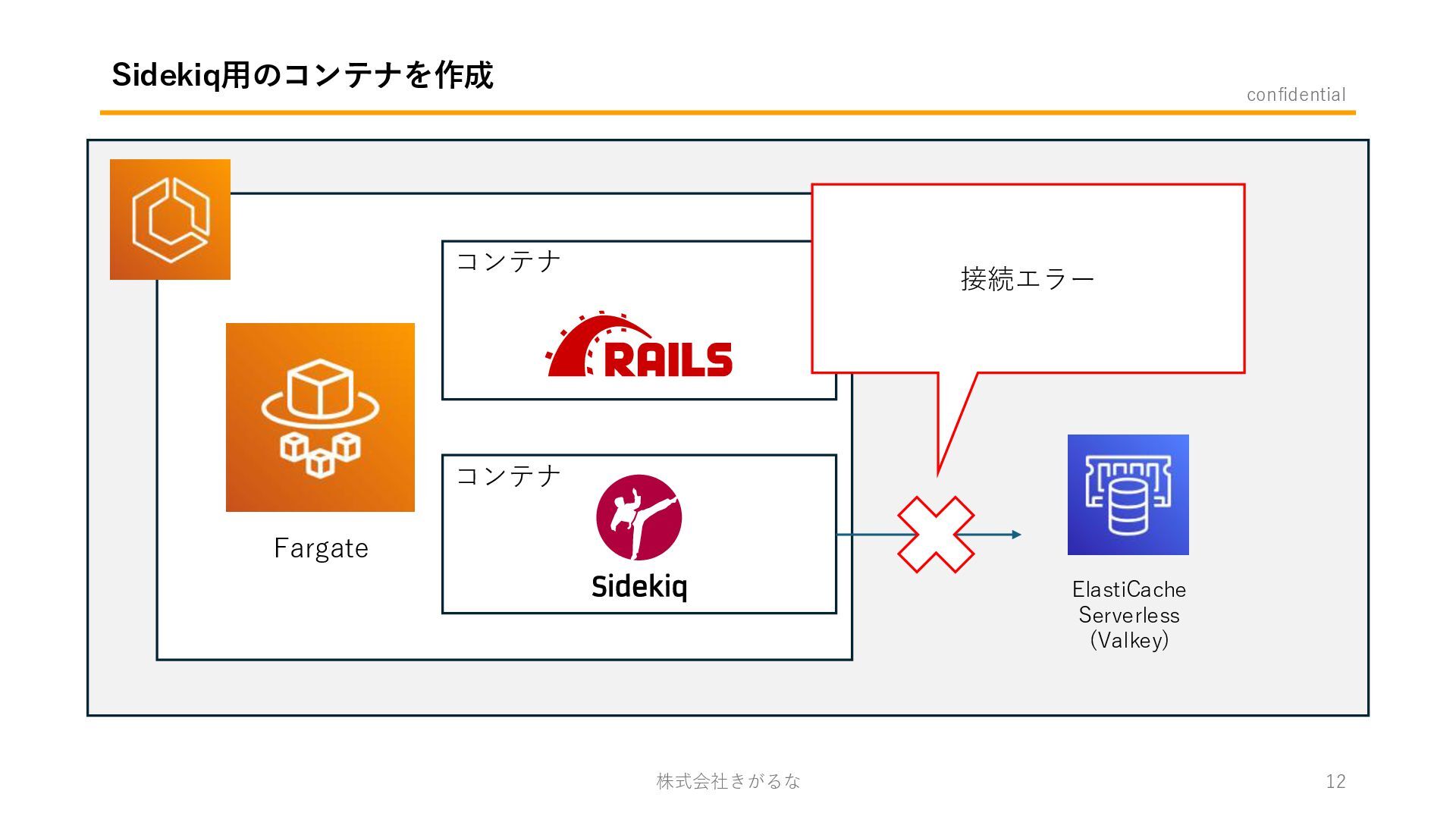 confidential Sidekiq用のコンテナを作成 株式会社きがるな 12 Fargate ElastiCache Serverless (Valkey) コンテナ コンテナ