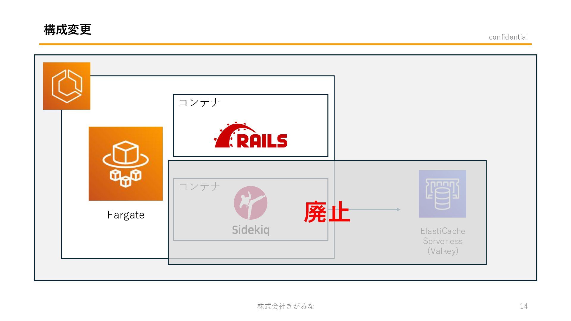 confidential 構成変更 株式会社きがるな 14 Fargate ElastiCache Serverless (Valkey) コンテナ コンテナ