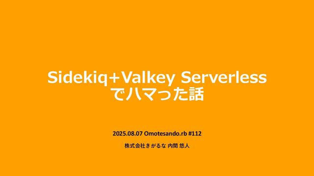 Sidekiq+Valkey Serverless でハマった話 2025.08.07 Omotesando.rb #112 株式会社きがるな 内間 悠人