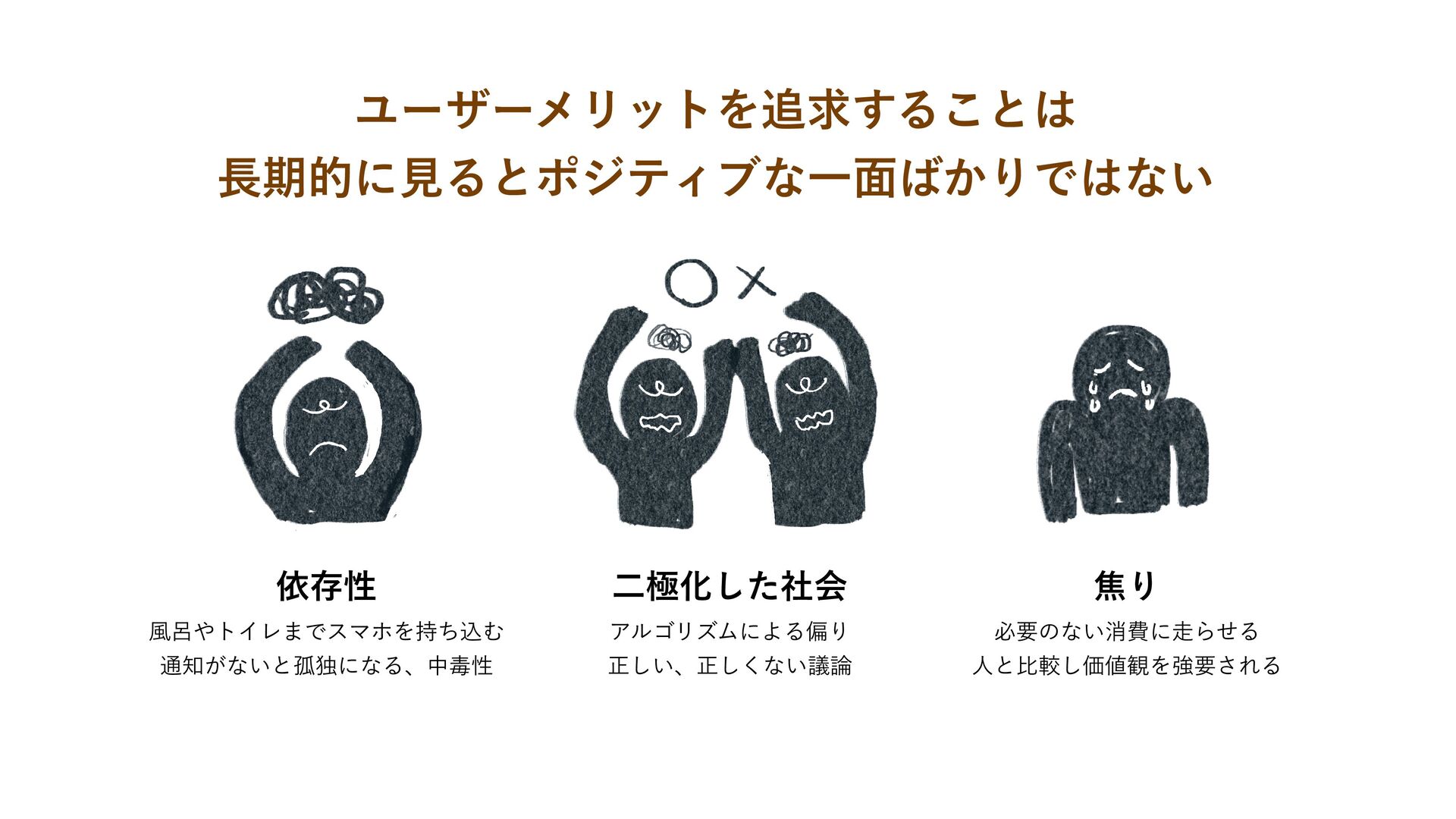 ґଘੑ ෩࿊τΠϨ·ͰεϚϗΛ࣋ͪࠐΉ ௨͕ͳ͍ͱݽಠʹͳΔɺதಟੑ ϢʔβʔϝϦοτΛٻ͢Δ͜ͱ ظతʹݟΔͱϙδςΟϒͳҰ໘͔ΓͰͳ͍ ೋۃԽͨࣾ͠ձ ΞϧΰϦζϜʹΑΔภΓ ਖ਼͍͠ɺਖ਼͘͠ͳ͍ٞ যΓ ඞཁͷͳ͍ফඅʹΒͤΔ