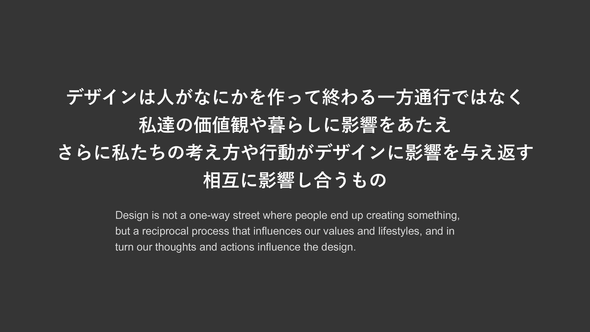 σβΠϯਓ͕ͳʹ͔Λ࡞ͬͯऴΘΔҰํ௨ߦͰͳ͘ ࢲୡͷՁ؍Β͠ʹӨڹΛ͋ͨ͑ ͞Βʹࢲͨͪͷߟ͑ํߦಈ͕σβΠϯʹӨڹΛ༩͑ฦ͢ ૬ޓʹӨڹ͠߹͏ͷ Design is not a one-way street