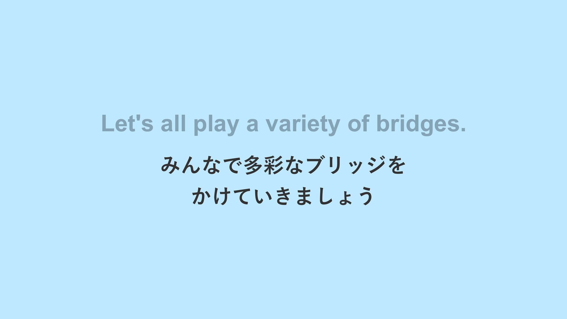 ΈΜͳͰଟ࠼ͳϒϦοδΛ ͔͚͍͖ͯ·͠ΐ͏ Let's all play a variety of bridges.